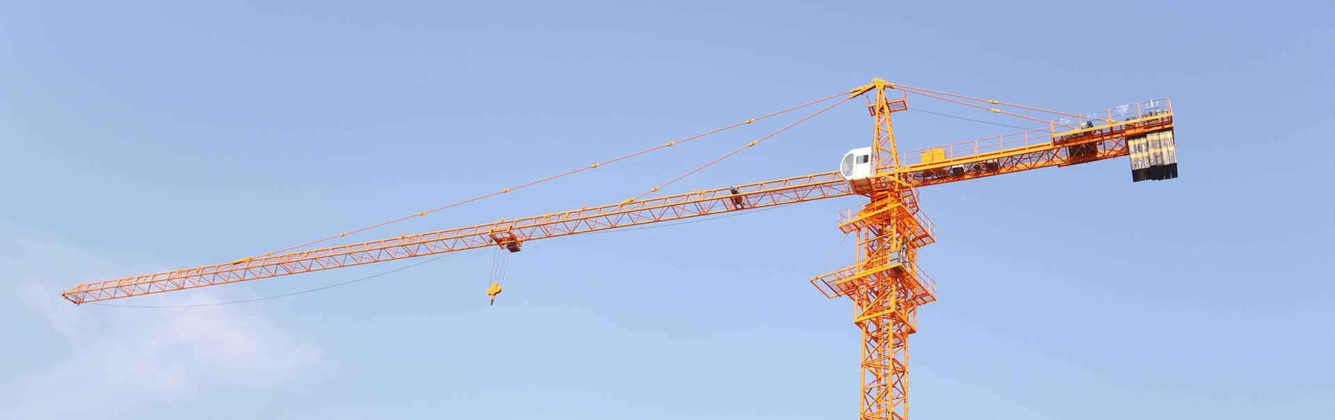 該機(jī)為平頭水平臂架、小車變幅、上回轉(zhuǎn)液壓頂升式起重機(jī)。最大起重量為6t;最大工作幅度為55米,額定起重力矩為:630KN.m.